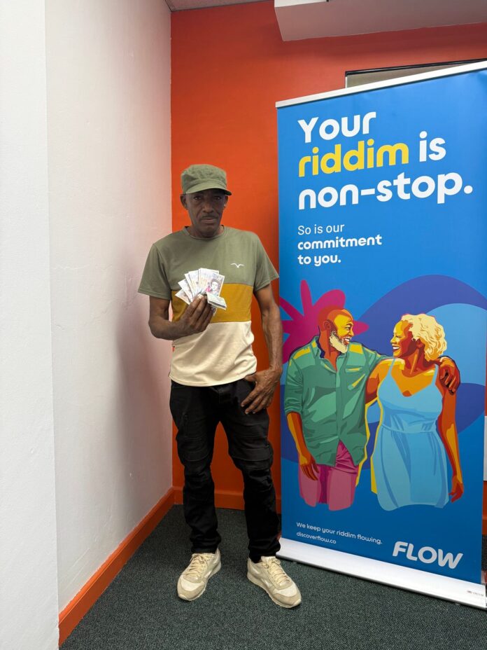 Alfred Rolle marks a big win after being named the final grand prize winner in Flow’s Riddim and Rewards prepaid promotion, walking away with $1,000 in cash.