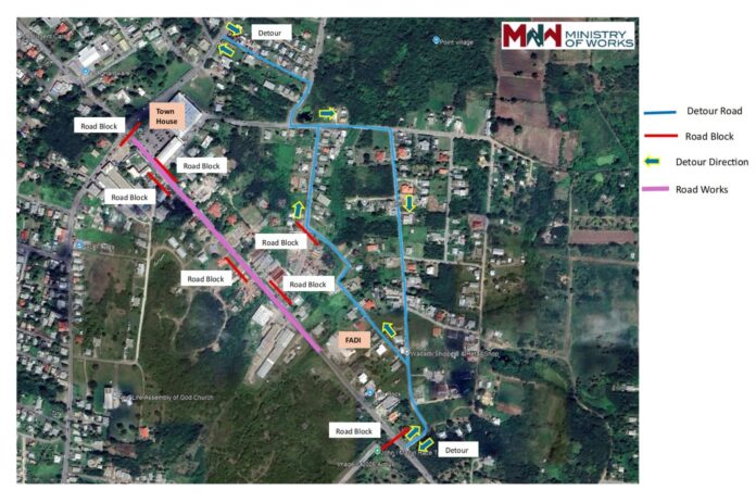 The Ministry of Works advises the general public that major infrastructure rehabilitation works will resume from Townhouse Megastore to FADI Building Supplies on All Saints Road (ASR).
