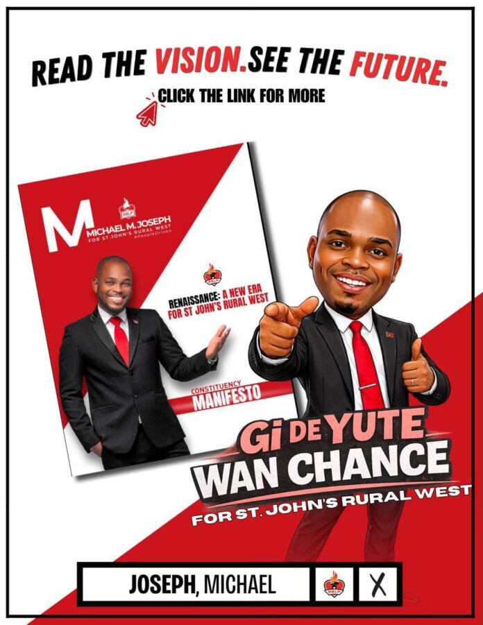 Michael Joseph, the Antigua and Barbuda Labour Party (ABLP) candidate for St. John’s Rural West, has released his constituency manifesto, outlining priorities centered on youth development, education, infrastructure, and entrepreneurship.